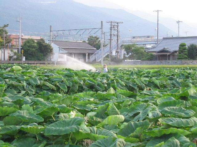 | Here's a guy watering his crops near the train station. |