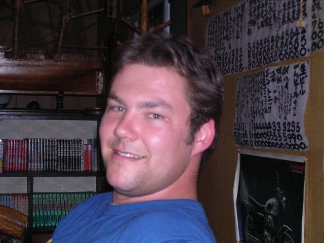 | Matt lives in my building. He works at Kamigori High School, about 20 minutes from my school. He's from Rhode Island. He majored in Religion. He likes surfing and playing drums. |