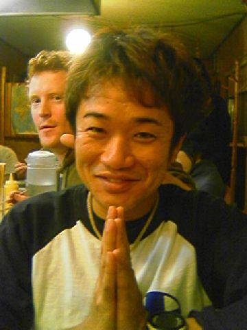 | This is Minato, the owner of the okonomiyaki shop we go to. He lives in Aioi, fairly close to me. He loves taking photographs. The walls of his shop are lined with pictures of his customers, mostly Japanese, but also including many foreigners. Minato is a very casual guy and he loves to joke around. Every week, he lets me come behind the counter and make my own martini. In fact, he bought olives and a cocktail shaker just so I could have martinis when I come. He and Nate to to hot springs (onsen) from time to time. When Nate's dad was in town, Minato showed them around the area. Minato is the main reason why we all get together each week. |