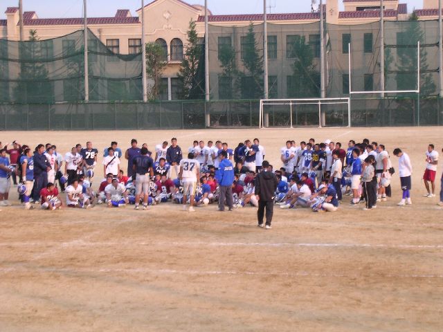 | We saw some people playing American-style football. This is rare in Japan. Japanese people like soccer, but they usually don't play the game Americans call 'football'. |