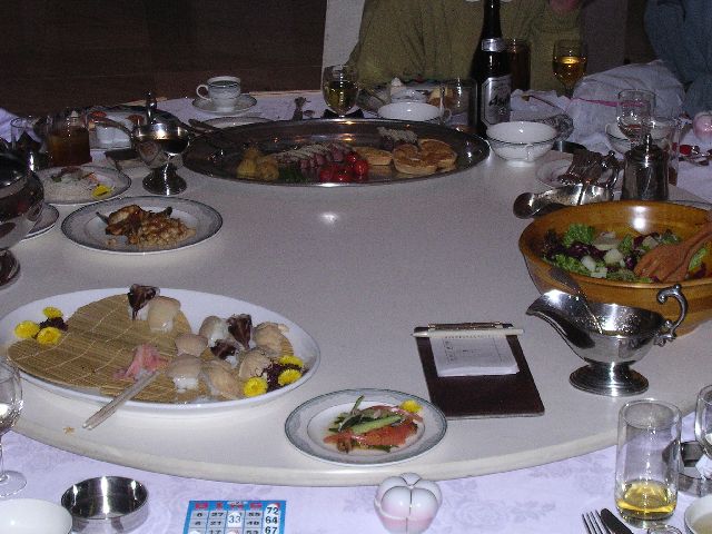 | The food was amazing. I've had hotel food before, but this stuff was really good. My favorite was the scallop (hotate) nigiri sushi. It's my favorite, but I don't get to eat it very often as it's a bit expensive. But, there was more than anybody could eat at this party. |