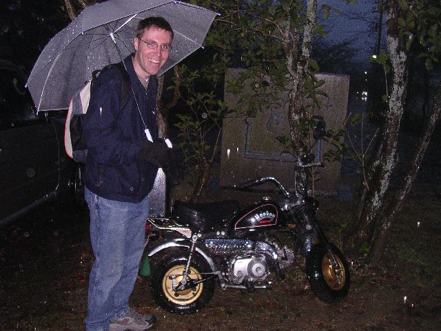 | In Japan, everything is small. Jeremy found this tiny motorcycle on the street and thought it would make a nice photo. |