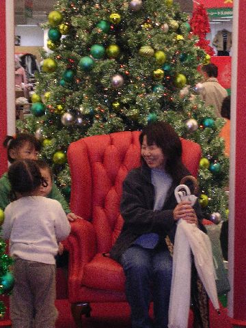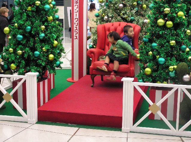 | But, they couldn't resist the appeal of the neat red chair. Soon, Akemi was banished and the cute kids had taken control of the cute picture-taking chair. How cute! (J) |