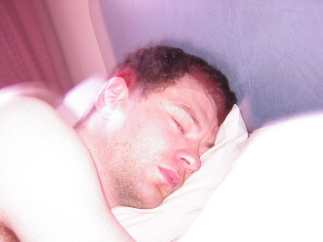 | Akemi took this picture of me dozing well into the morning. (I figured if I posted it here, it would significantly reduce its blackmail value.) |