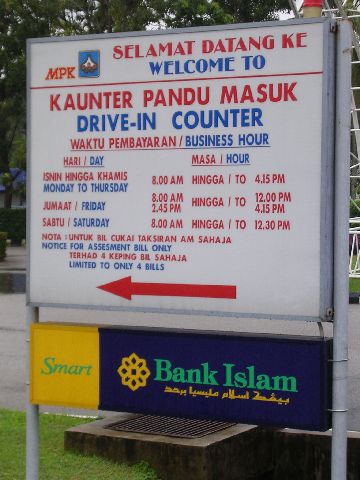 | I like taking pictures of signs and normal parts of a place that differentiate it from home. Now, ask yourself this. Have you ever seen a "Bank Christian" in the United States? How about a "Bank Buddhist" in Japan or a "Bank Catholic" in Mexico. This "Bank Islam" sign was a small symbol to me of how entrenched religion is in their society. I've heard the Chinese minority have their own bank. |