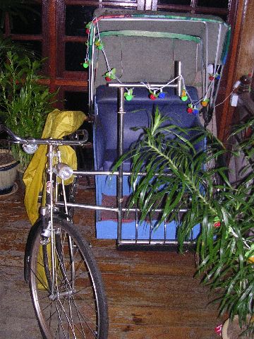 | This tri-shaw was on the porch at the tourist information center. These things are sometimes used in tourist areas of Malaysia to take tourists around on short tours. Not our cup of tea, but they are pretty neat looking for what they are. |