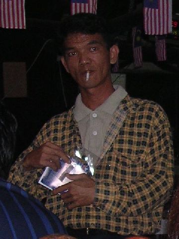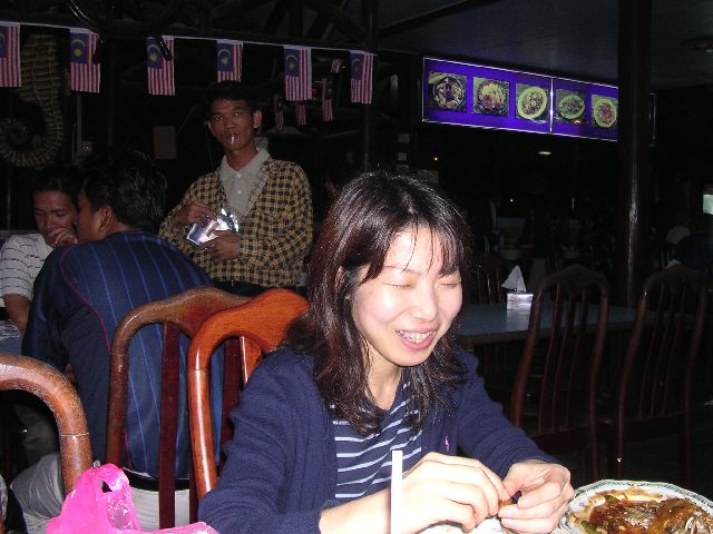 | If you zoom in, you can see this guy walking around the restaurant peddling bootleg DVDs. Bootleg DVDs are everywhere in Malaysia. There is apparently no enforcement. And, since nodody could afford full price American DVDs anyway, I find it hard to object too much, myself. But, it is interesting. |