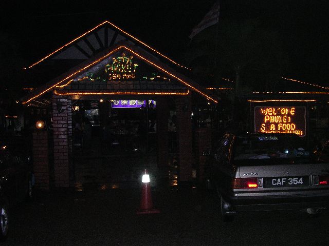 | For dinner, we hit another area of Kuantan on recommendation of our new friend Anwar. We landed at "Phuket", another Malaysian seafood restaurant. We figured being on the coast, seafood was a safe (e.g. sanitary) and tasty bet, so we stuck with it. |
