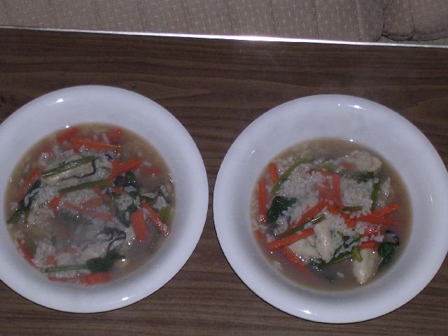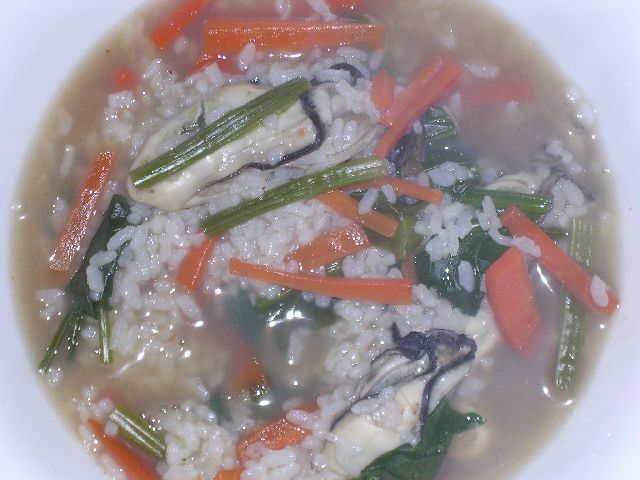 In the evening, Akemi made oyster zosui. Zosui is made with rice and other stuff. It slightly resembles risotto, but that really doesn't do it justice. Zosui is like, well, zusui. Try it sometime. Here's a picture.