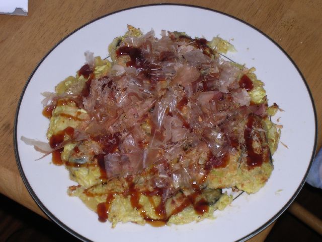 | Oyster okonomiyaki. All done. |