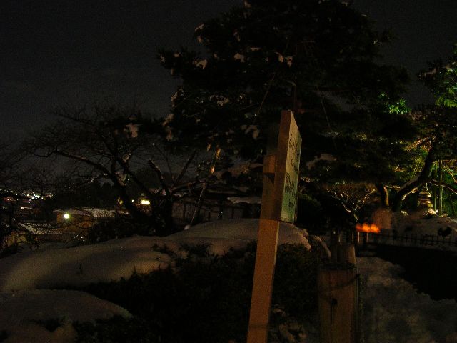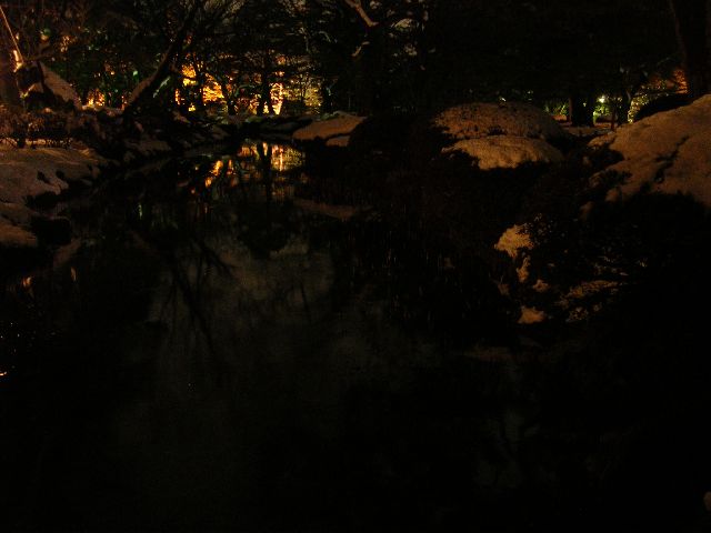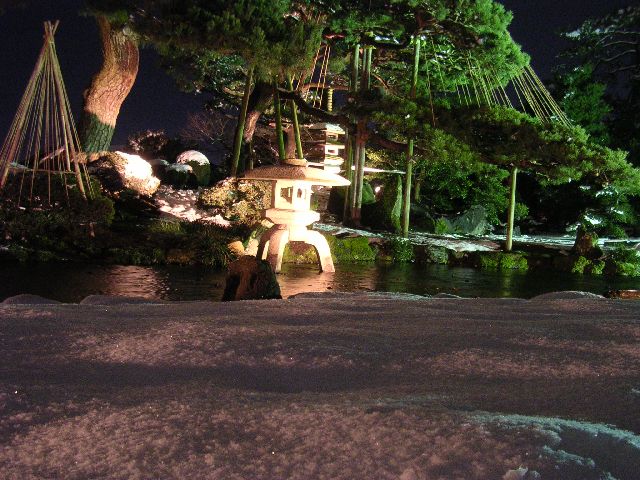 Next, we went to Kanazawa's famous Japanese garden, Kenrokuen. It was covered in snow and it was getting late, so we weren't sure if we could go in. On the contrary, we got lucky. It was a special event that evening. They had lights all around the garden. At 6:00 PM, after it was dark, they opened the park for free for a special night time snowy garden viewing event. It was swarming with people. People were taking pictures everywhere. It was like a big photography festival. I hate to take pictures of anything if it infringes on the peace and ability to enjoy the event. I'd rather have memories than nice pictures. But, I indulged a bit and Akemi was all in favor of it. So, here are my pictures.