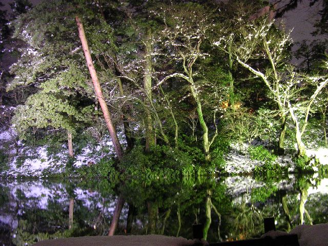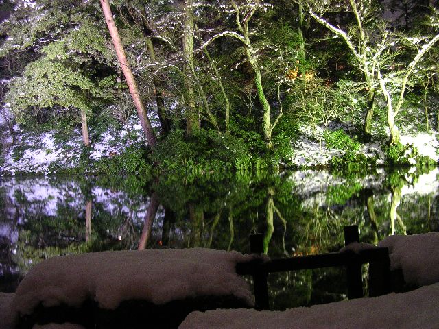 | Inside Kenrokuen park in Kanazawa. This scene was about 20 times as big as you see here. I just didn't have the wide angle lens I'd need to capture it. It was extraordinarily beautiful. I didn't want to take a picture at all. I just wanted to sit and admire it. You'll notice the reflection in a big pond. |