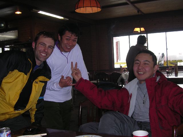 | Nate, Kazu, and Minato (left to right) in the lodge. |