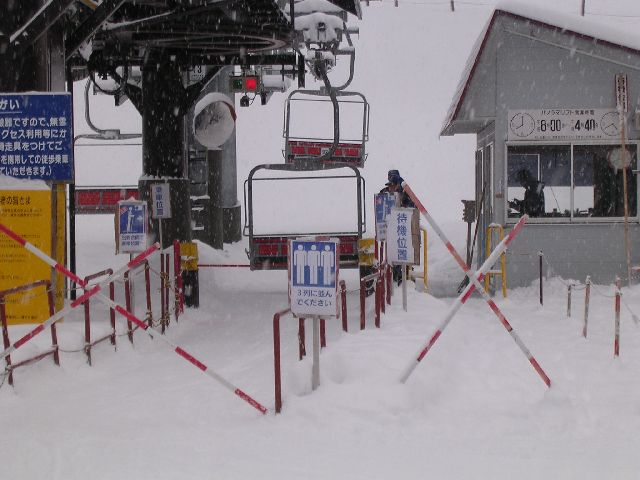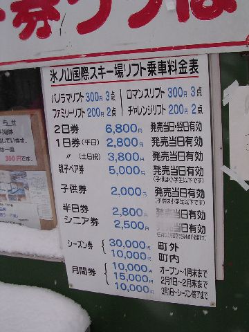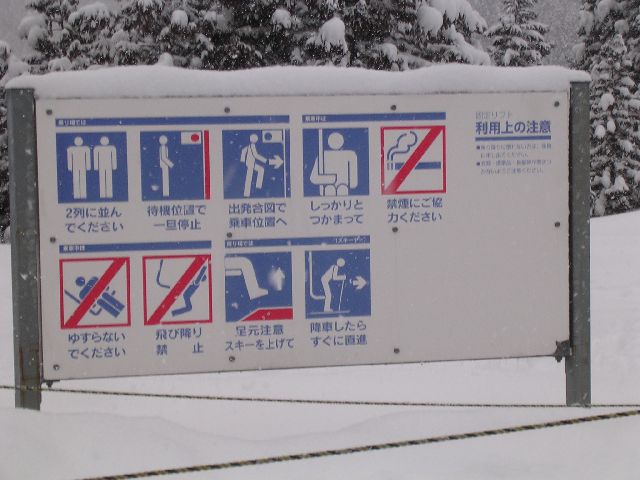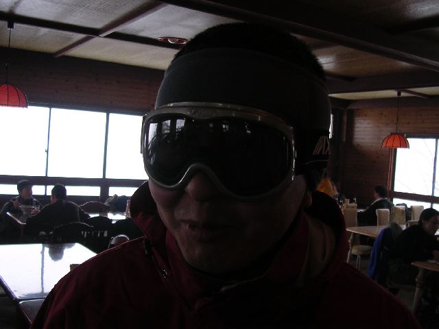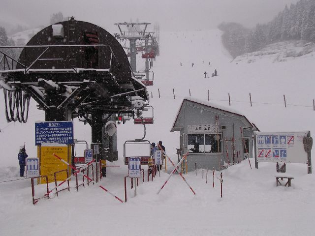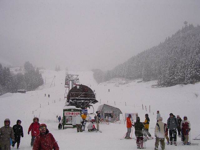 Before I launch into the pictures, I want to highlight a few differences between skiing at Hyonosen-Kokusai in Japan, versus the ski areas in Washington State back home. First, people never ride the chair lift next to strangers. Even if each chair can hold 4 people and there are lots of people in line, a solo skier will still ride the chair lift alone. Second, there were a lot more groups of people skiing under the auspices of a ski school. Third, at least at this ski area, the food in the lodge was totally affordable. ¥500 (≈$5) for a boul of ramen noodles (nice and hot, just like you want after skiing). ¥400 (≈$4) for a couple pancakes with syrup and butter. ¥600 (≈$6) for some udon (thick noodles, also hot and nice after skiing). I seem to remember food being about twice that back home. Fourth, the lift ticket was a little cheaper. It's usually ¥3800 (≈$38), but we had a coupon so I slid in for ¥3500 (≈$35). "The Summit At Snoqualmie" ski area back home charges $42 plus about $3 in sales tax. Fifth, gear rentals were competitive. Back home, I believe there's just one rental shop. Here, there were several, very near the ski area, but totally separate. I paid ¥4800 (≈$48) for skis, boots, goggles, gloves, ski pants, and a ski jacket, reflecting a little friendly discount. Finally, the ski area (at least this one) was the least commercial/glitzy/yuppy ski area I've ever been to.