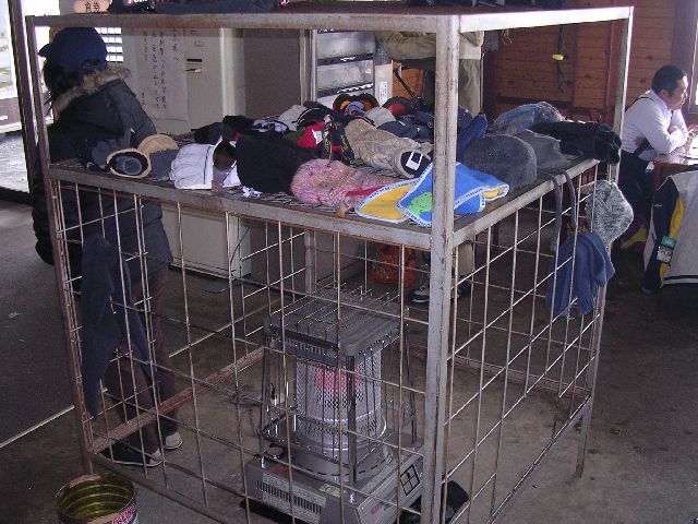 | They have couple carosene heaters in the lodge. They put these structures over/around them so people can dry and warm their gloves and other gear. It's really nice to put on toasty gloves before going back out into the cold. |