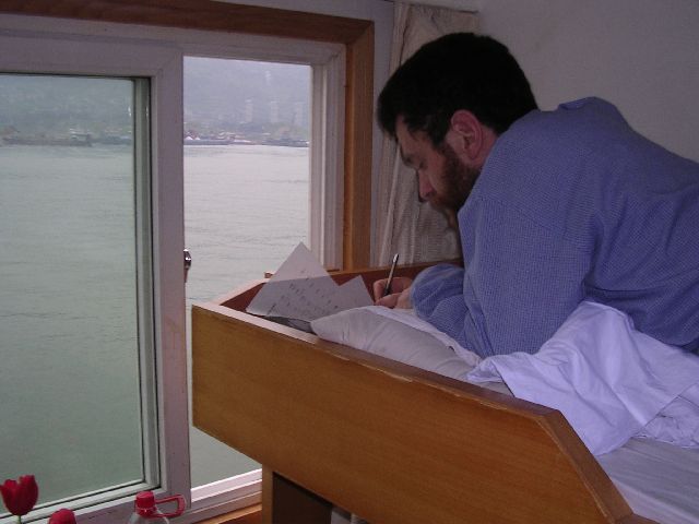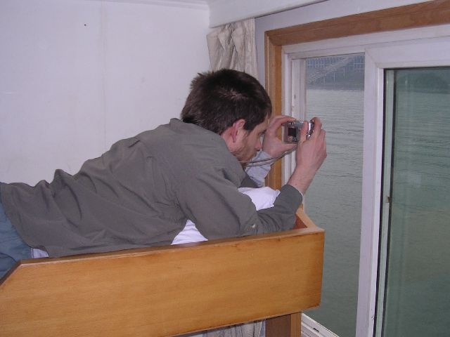 thumbnailDavid taking pictures of the pretty coast land from his bunk bed.  By the way, this room may look clean from this picture, but the rest of the room was pretty dirty.