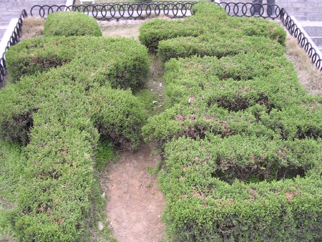 thumbnailHere is a shrub cut in the shape of a character that means blessings.  There's another one above it that says "thousand".  Together, they mean "thousand blessings".