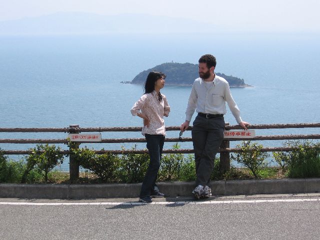 In the afternoon, my neighbor, Mrs. Yamamoto took us for a ride by the sea in Aioi and up to the top of a mountain. At the top of this mountain is a small summer resort and a beautiful park with a gorgeous view of the sea and Aioi. I really wanted my mom to see it. I was really happy Mrs. Yamamoto offered to take us.