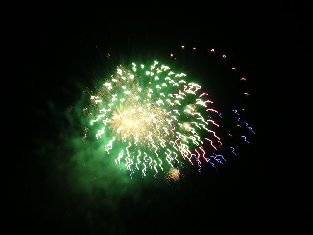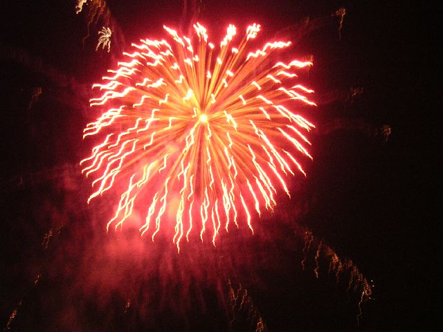 | Aioi fireworks - this one was a real screw-up, but it looks pretty cool, I think. I moved my hand too much while doing a time exposure photo. |