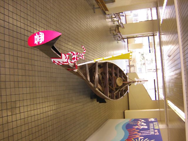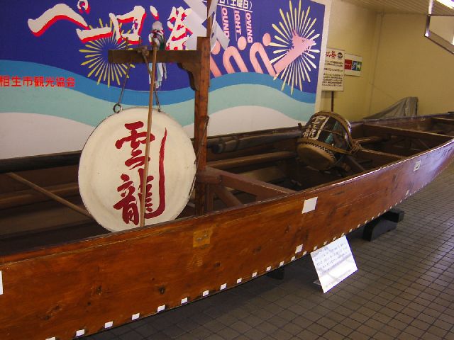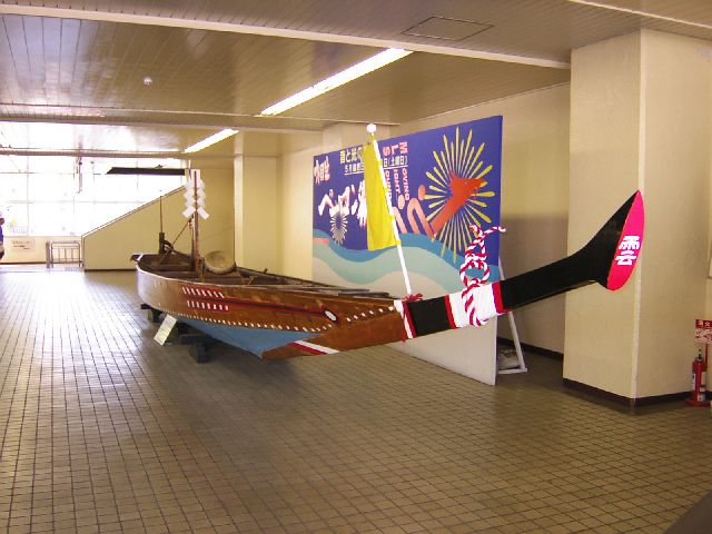 | Here is one of the "peron" boats. It is situated in the train station in Aioi, where visitors to the town will see it just after getting off the shinkansen (bullet train). |