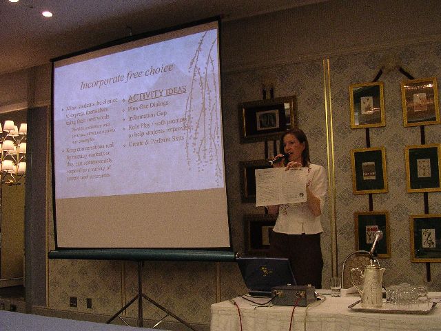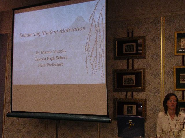 The second day, we had fantastic workshops given by particularly good JET English teachers on all kinds of topics.  We could choose which ones we went to.  I went to workshops on classroom management (discipline, etc.), leading an English club (ESS), enhancing student motivation, and using audio/video materials in class.  I took a few pictures of these workshops.