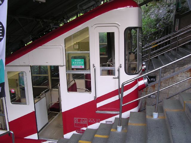 | I thought the cable car was really neat. It takes you up a really steep incline on the side of the mountain. Since this train does nothing but go up this steep incline, the train is built to work at an angle. Everything inside is at a slant. The whole interior of the train is a big staircase. |