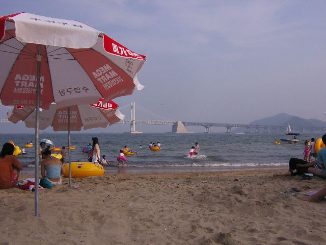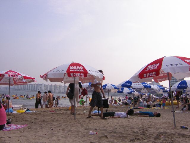 On our first day, we took a cab to the hotel and then headed straight for the beach.  Pusan has quite a few beaches which are, for better or for worse, very popular.  But, they're big enough to support the crowds and they have a fun atmosphere.  We took a short dip in the sea water, which was clean enough to be considered safe, but definitely not crystal clear.  Then, we just hung out on the beach.