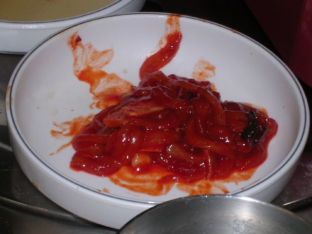 After our horsing around at the beach, we were ready to get down to business.  A quick stop at the hotel, and then we were looking for dinner.  The hotel manager was kind enough to walk us down the road to the restaurant of our choosing and place an order for us.  I should add that there was no sense of a kick-back happening.  Just a genuinely nice guy.  And, it was totally unnecessary, given the $40/night price we were paying, cheap for Korea, cheap for the neighborhood, cheap for any passable hotel in any major city.