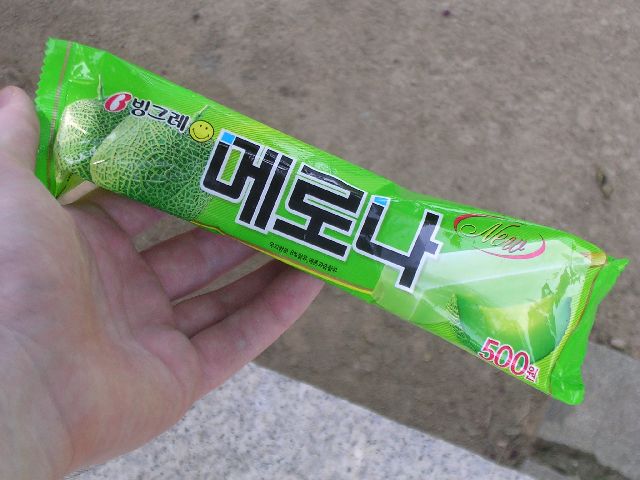 | Melon ice cream bar. Not a popsicle. This one was creamy and had a rich, sweet melon flavor. |