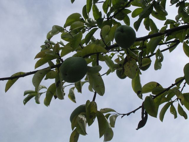 | We found this tree bearing fruit. I'm not sure what kind of fruit it is. Please tell me if you know. |