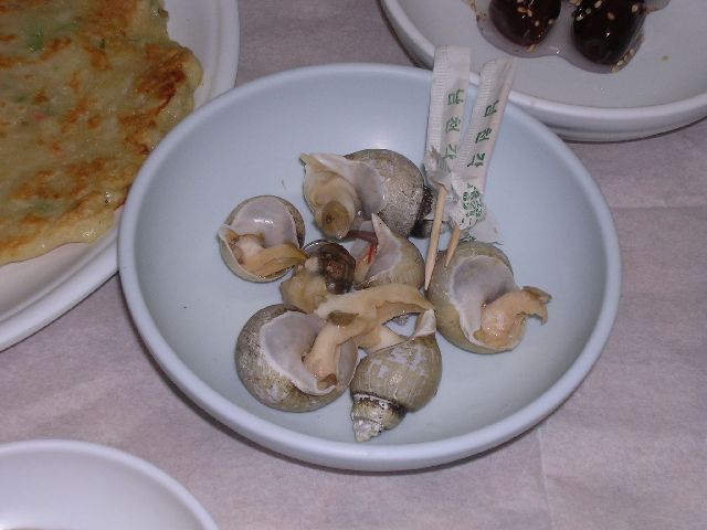 On our last day, we didn't do much real sightseeing.  We wanted to try some Korean-style sashimi (sliced raw fish), something Pusan is known for.  And, I wanted to buy some CDs.  And, we both wanted to buy souvenirs.  Sorry, but this page will be almost all food.