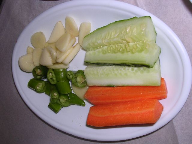 thumbnailThey also gave us a plate of vegetables and lots of RAW garlic.  I really stunk during this trip, due to all of the garlic and the heat.