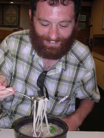 thumbnailEventually, we ended up at a noodle restaurant.  This soup is just noodles, beef, and a little vegetables.  It was really delicious, like almost everything we at in Korea.  We got the same thing.