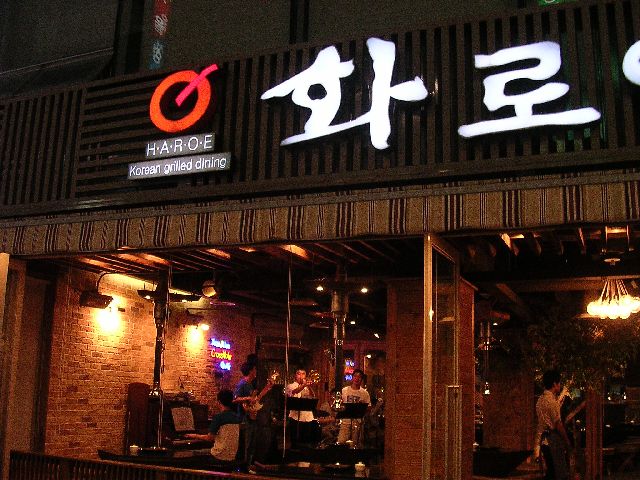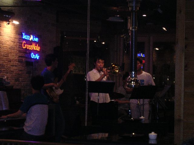 thumbnailThat night, as we were walking around, we stumbled upon this grilled meat (like yakiniku) restaurant with live jazz.  I was disheartened to see that everybody was like us, standing outside the restaurant listening to the free concert without patronizing the shop that was sponsoring it.  There were very few people inside.  But, we had already eaten, so we couldn't go inside.