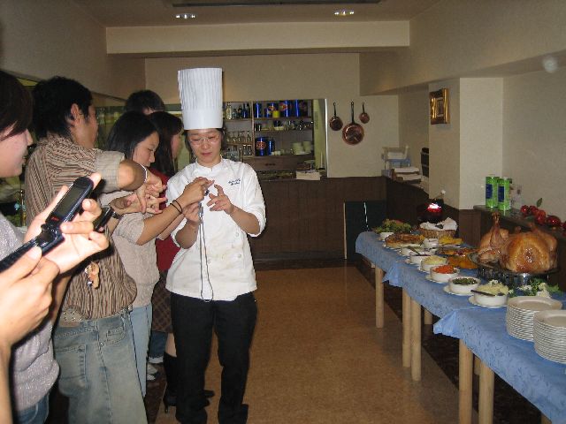 Last year, I had no Thanksgiving. This year was different. A woman who owns a small restaurant in Himeji held a Thanksgiving dinner for the local foreign population. It was kind of a personal project, a challenge for her. She went out on the internet and found recipes and serving information for American Thanksgiving food. I never really thought about it, but Thanksgiving is really its own type of food. When else do you eat this stuff? Anyway, she enjoyed the project. She's a fantastic cook, but I don't think her restaurant is doing so well. So, I think this was also a way just to do something different and have some company. We all paid ¥3000 (≈$30) which probably just barely covered the groceries. I don't see anyway she could have made a profit. In any case, regardless of the price and all that, it was an absolutely marvelous dinner. Really great. As you can see from the photos below, everything was just perfect. It tasted, smelled, and looked just like what you'd have back home. Really good stuff. Here are some pictures.