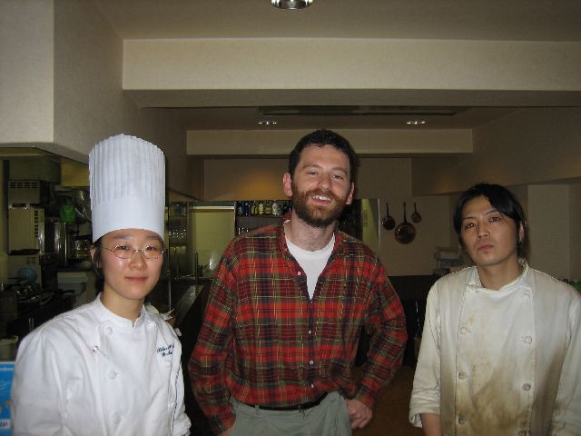 | The chef, one of her assistants, and one of her grateful guests. |