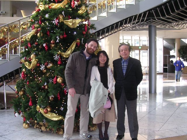 | Akemi, her father, and me, at the hotel (?) where the restaurant is located. |