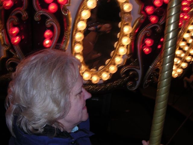 | Here, I tried to take my own picture. About the same as the others. Not very good, but I tried. I wanted to enjoy the carousel, so I didn't bother to try very hard. I just wanted to snap a couple pictures just to remember. It really was fun riding. |