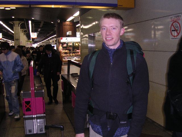 | In the morning, Linn and I went to the nuclear power information center (science museum) and then to a ramen restaurant, but we had to be quick. In the end, we had to literally run to get him on a train to catch his plane on time. He left Japan for his home in Colorado in the early evening. This was taken at the Namba Nankai train station in Osaka. |
