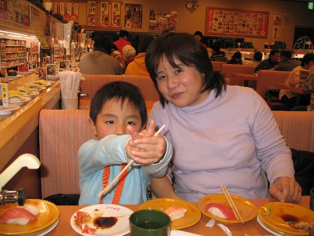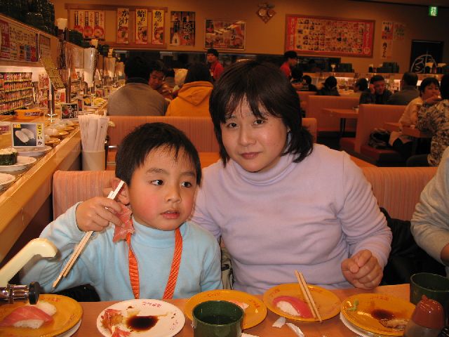 Before going to Akane-no-yu, we always go out to dinner. Today, we had conveyor belt sushi (kaiten-zushi).