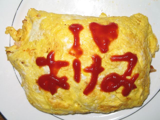 thumbnailAfter making my dinner, an Omellette Rice (omuraisu), I painted a message on it in ketchup and took a picture with my cell phone.  I sent the picture to her cell phone.  In Japan, Valentine's Day is for women to give men presents.  Men reciprocate on White Day (March 14).  Thus, although this late and insignificant, it's okay.