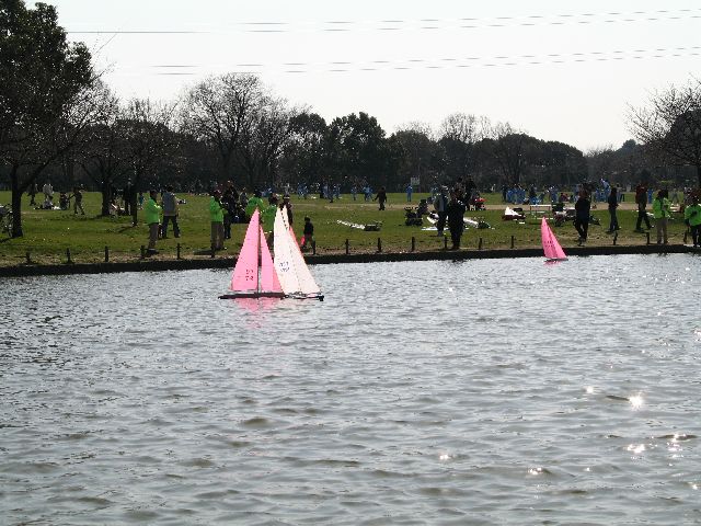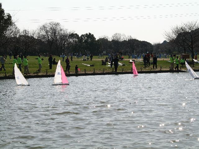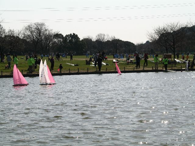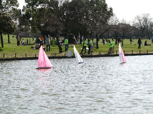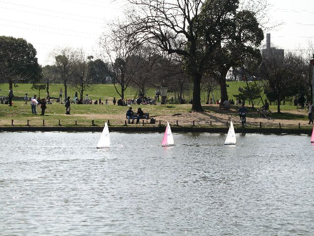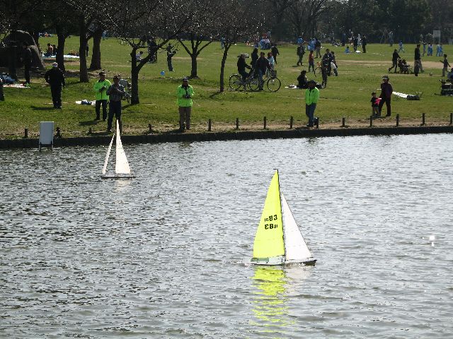thumbnailPeople were sailing radio controlled model sailboats around the pond.