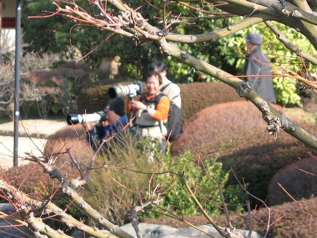 thumbnailThese photographers are all taking pictures of the same bird.  They have giant cameras that look like telescopes.