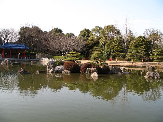 Today, Akemi and I made a short trip to Daisan Park in the Mozu area of Sakai City, in Osaka Prefecture.  Maybe 45 minutes from Akemi's house.  Like yesterday, we had the good fortune of seeing beautiful scenery.  Unlike yesterday, it was warm, sunny, and wonderful.  Due to the gorgeous surroundings, I took way too many pictures.  It's just too tempting.  You feel like you're painting with finger paints.  You can take such gorgeous pictures with so little effort when you're in such a beautiful place.  Anyway, here are the pictures.