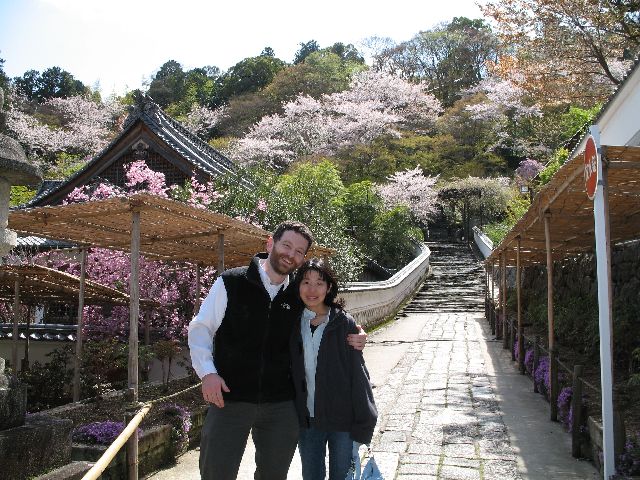 She wasn't expecting any ceremony about proposal nor was she expecting an engagement ring.  I simply told her, actually a long time ago, that I wanted to look at cherry blossoms with her on Sunday.  I had this in mind, even before I had made up my mind about marriage.  This was my tentative plan.  We went to Hasedera, a town in Nara prefecture near the border with Mie prefecture.  She had read somewhere that the cherry blossoms were still at or near full bloom there.