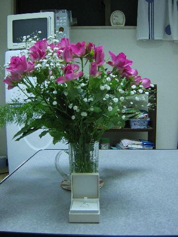 Akemi knew nothing of the ring.  I made up my mind while I was visiting graduate schools in the United States.  When I got back, I let her know very, very subtly.  I just changed my verb tenses.  Instead of, "If we were to get married, then we would need to do this paperwork," (subjunctive mood) I said, "We need to do this paperwork." (affirmative mood).  I guess that's the ultimate in Japanese indirect communication.  She heard the message loud and clear.
