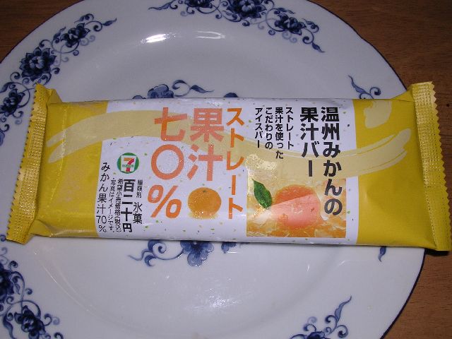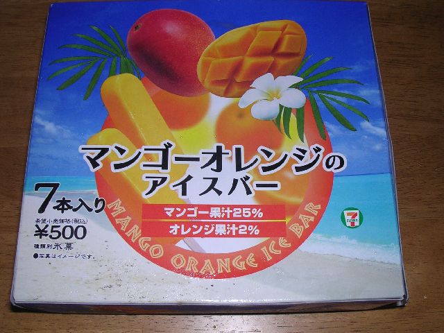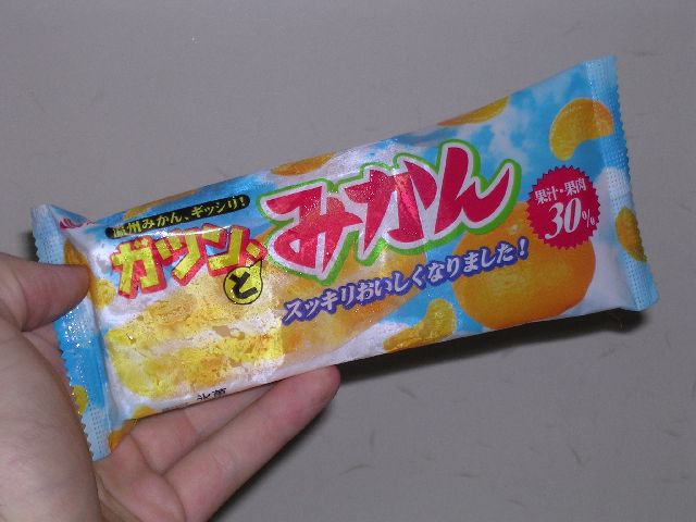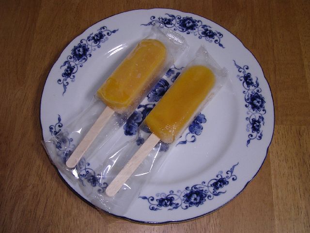 | Mikan (Japanese orange) popsicle with big chunks of mikan inside. |