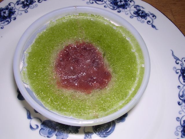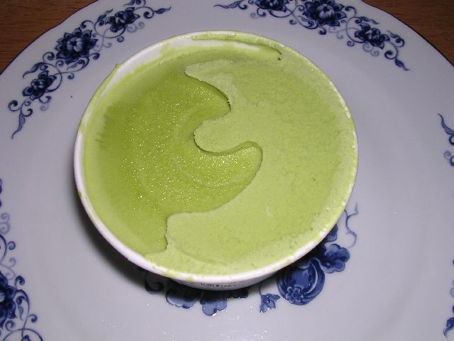 | Green tea (matcha) sorbet/sherbert cup with a red bean (azuki) core |
