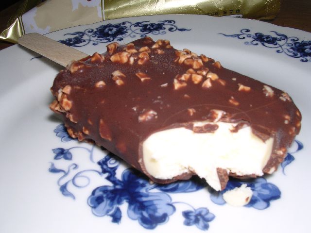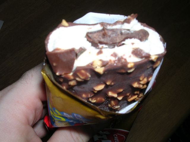 | Another kind of packaged ice cream cone. This one has nuts and chocolate, a little like a Nutty Buddy in the United States. |
