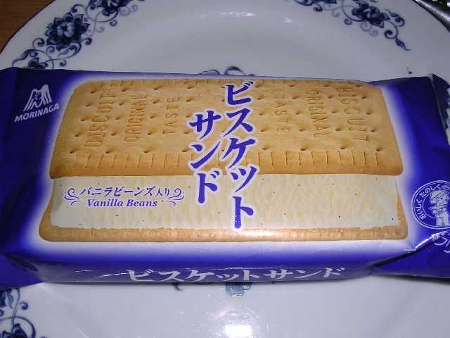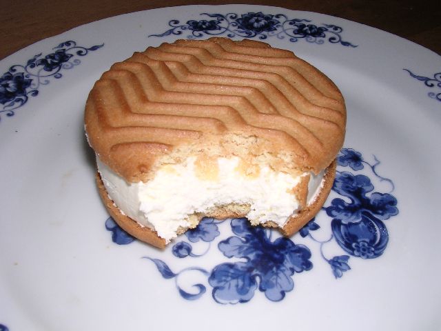 | Ice cream sandwich made with really tasty vanilla bicuit-cookies |